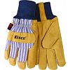 Lined Suede Pigskin Knit Wrist Glove TAN/BLUE/RED LARGE (Case of 6)