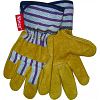 Lined Suede Pigskin Knit Wrist Glove TAN/BLUE/RED MEDIUM (Case of 6)